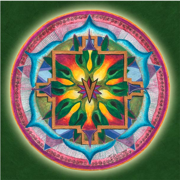 The Transformation Mandala has two, four, five and six point symmetry all superimposed to make one. That is how transformation works; it looks at something really complicated (like life) and changes the way we see it. Get this…. right right right, we can’t always change the thing itself, but we can surely transform the way we see it. We can transform how we talk about it, hold it, or allow it to hinder us. This mandala is a fire burning through self imposed limitations! It is a surety that some higher order can handle the situation, no matter how complex. It is the courage to proceed on faith, without yet being able to see the bigger picture that only looking back on it will provide.