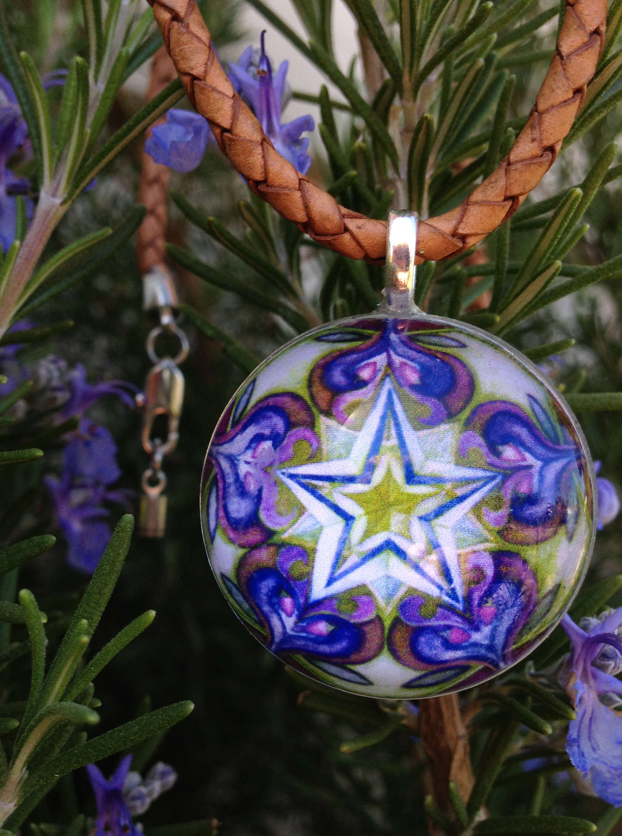 The pendant pictured here is the 30mm silver plated resin-back style for $18. The leather cord is sold separately in the Miscellaneous Items section.